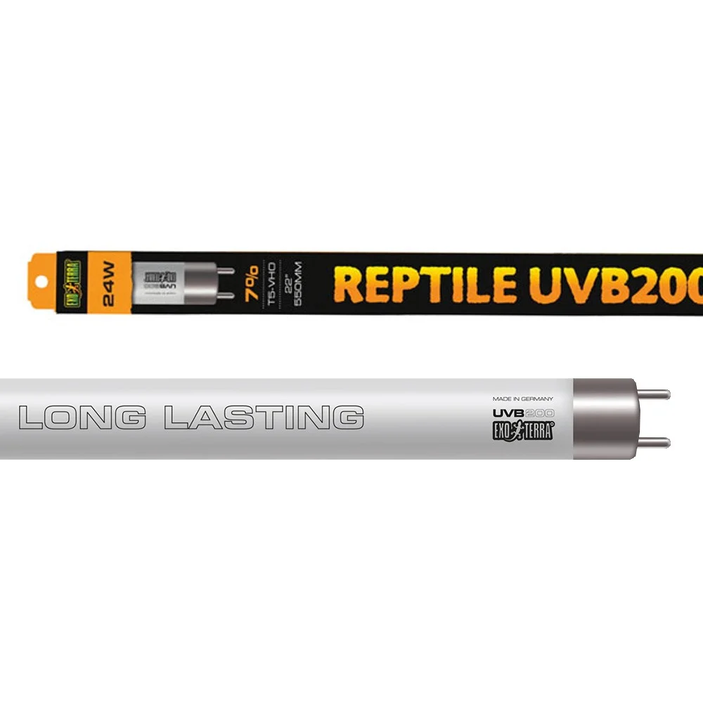 The Exo Terra Reptile UVB200 T5 VHO provides reptiles with balanced UVA and UVB exposure, supporting their natural basking behaviors while preventing overexposure. It is specifically designed for species that require controlled UV intake, ensuring they receive the necessary levels without overheating.