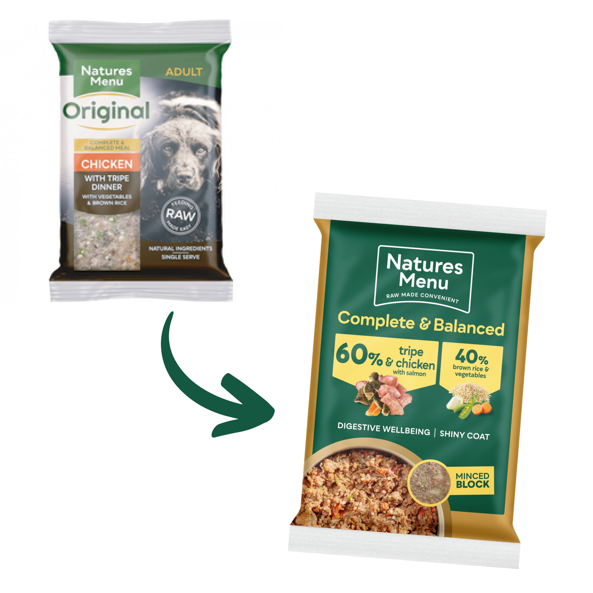 Tripe and chicken dog food in raw block form is a simple and convenient way to feed your four-legged friend, as you simply decide the number of blocks your dog needs, let them thaw, then serve. Mess-free meal times and licked clean bowls. Your dog will thank you for the shiny coats and happy digestion that natural feeding can lead to.
