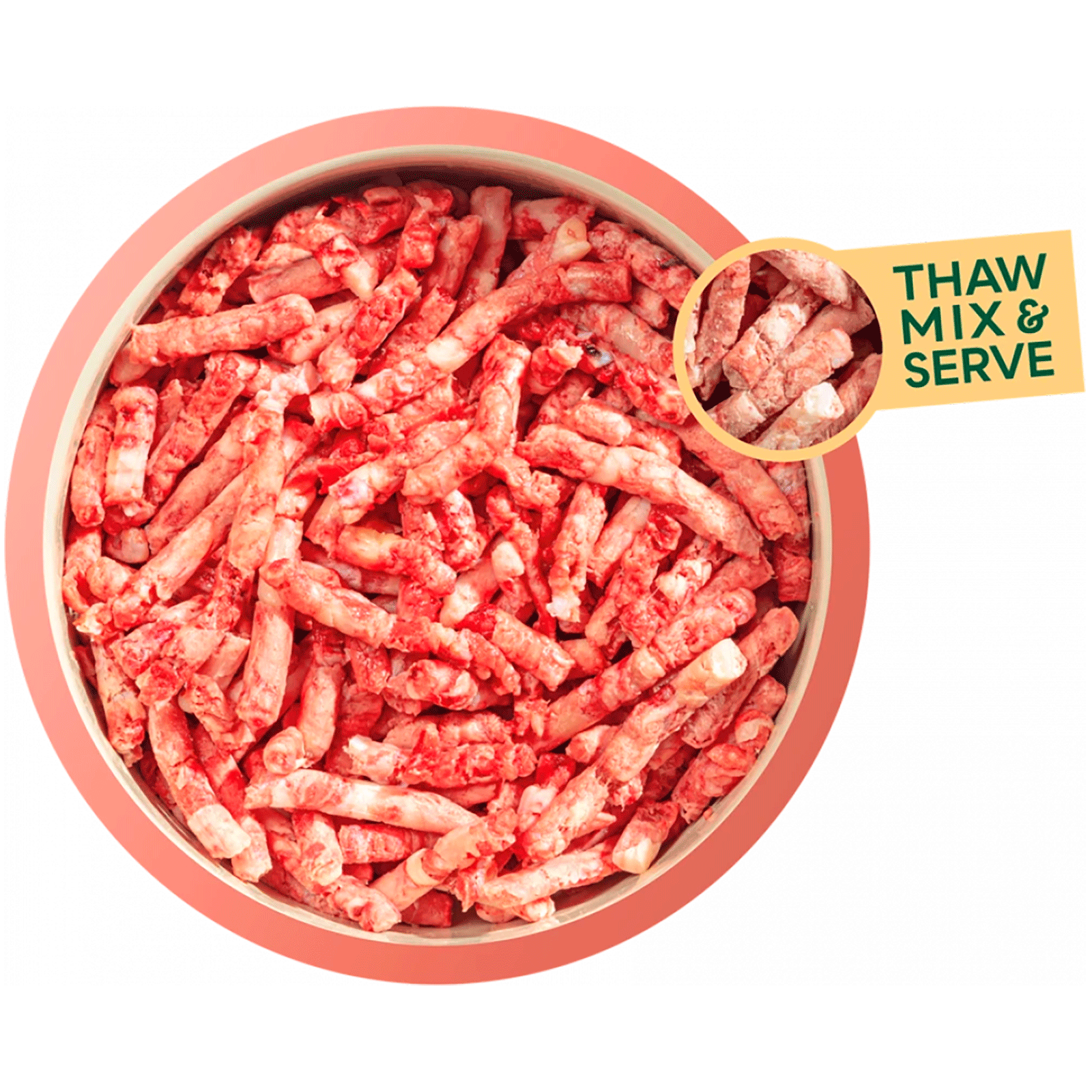 Made with quality cuts of human grade beef for a tasty red meat ingredient that’s rich in important vitamins and minerals to support your dog’s wellbeing. Freeflow mince is a convenient way to keep larger quantities of protein in your freezer – simply pour out the portion you require when you need it. Just Beef Raw Freeflow Mince is an ingredient, not a complete meal. Add it to other ingredients to make balanced and nutritious raw meals at home. We believe dogs deserve, real, raw food. That’s why since 1981, we’ve been committed to making high-quality, easy to feed raw food your dog will love. Feed material for dogs. Due to this being a natural raw product, colour and appearance may vary between batches.