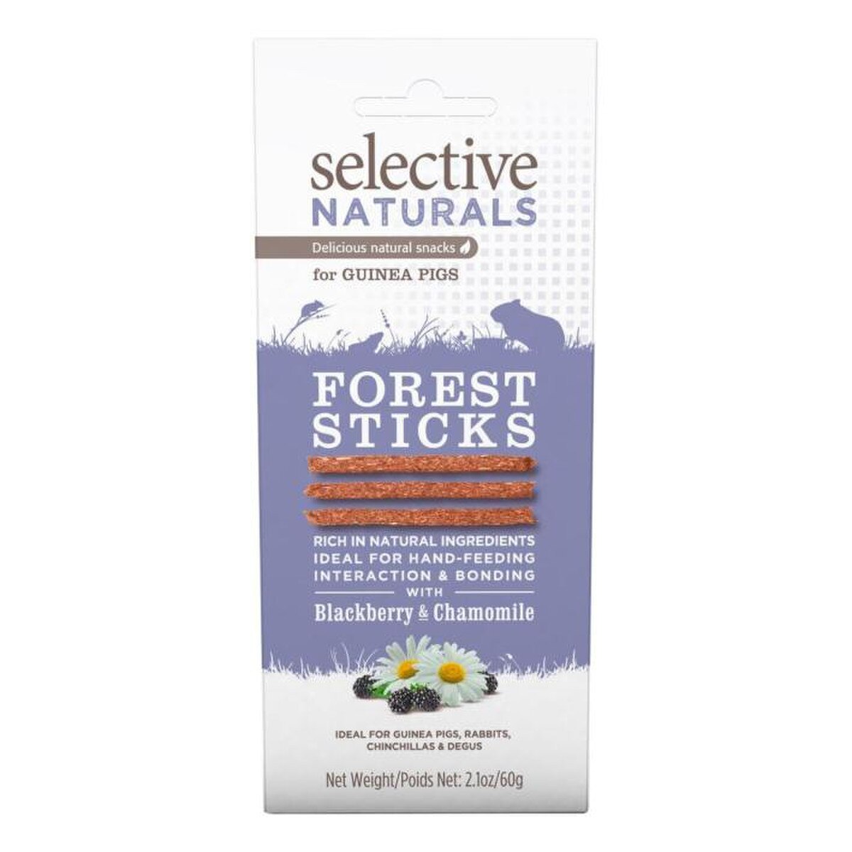 Selective is the widest range of veterinary recommended species-specific foods formulated to meet the nutritional needs of small furry pets. Selective Naturals now allow treating small pets to be healthy as well as delicious. Selective Naturals Forest Sticks and Blackberry and Chamomile are a tasty baked treat made fresh from our bakery which are high in fibre with no added sugar.